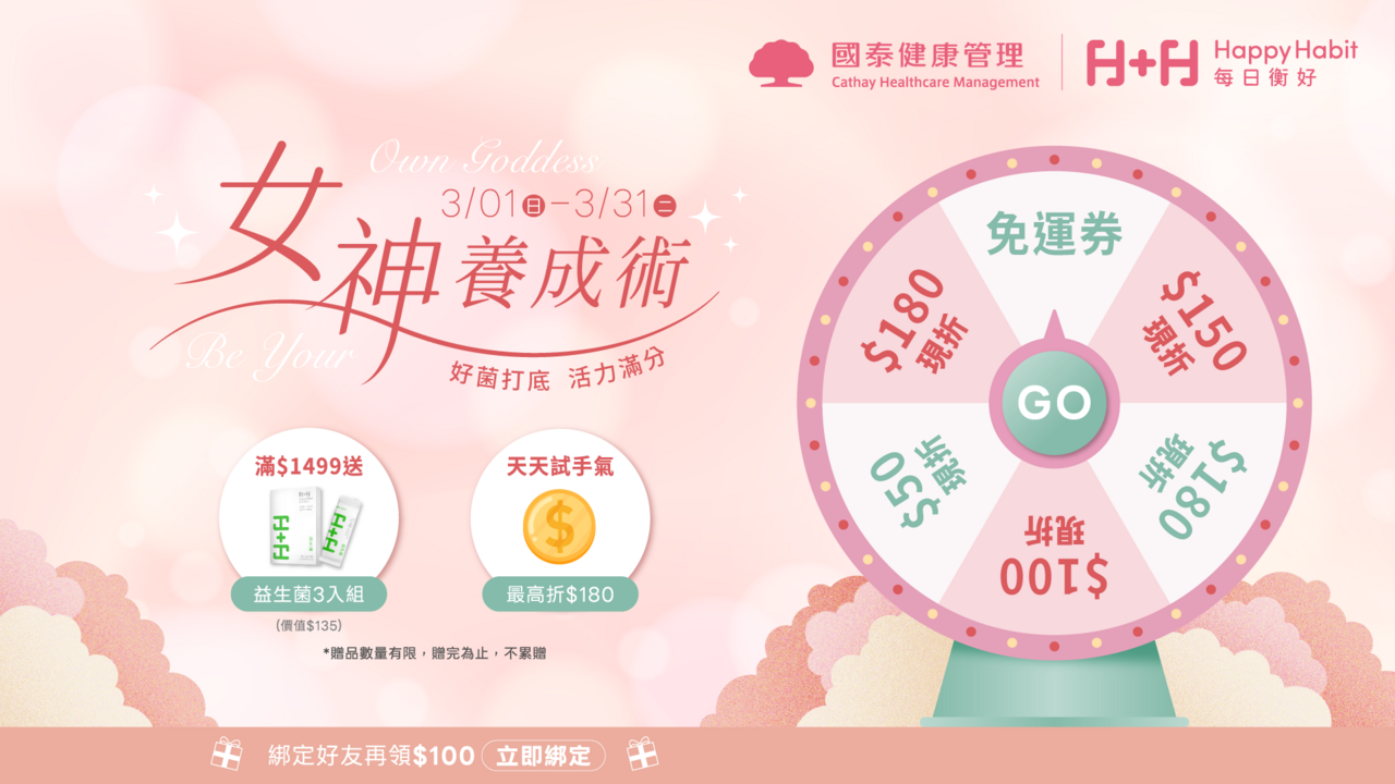 女神保養術|每日衡好3月官網天天抽好禮 下單滿額再送益生菌體驗組